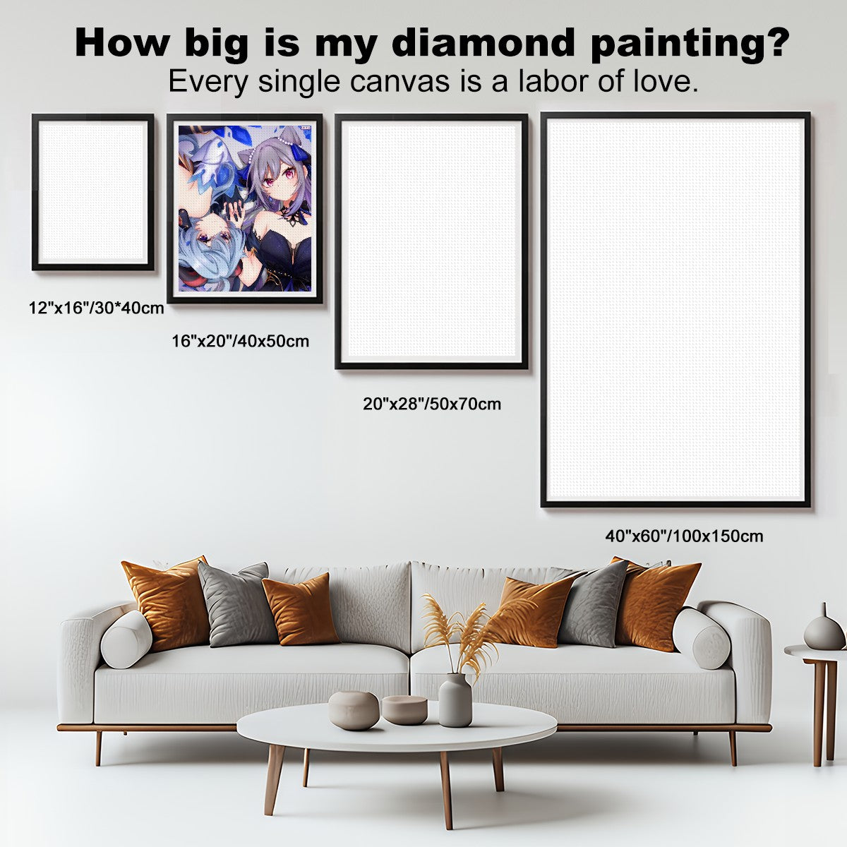 Suitable Usage: This Genshin Impact diamond painting is a versatile and elegant addition to any living space. It can be hung as a stunning wall decoration or placed on a surface for a sophisticated touch. It also makes for a thoughtful and suitable gift for family, friends or any fellow Genshin fan on special occasions such as birthdays and Christmas.