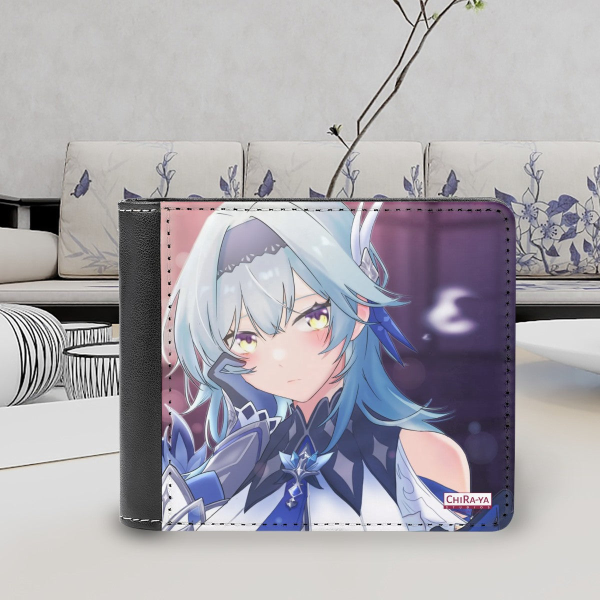 Show off your favorite character wherever you go with Chiraya Studios' Genshin Impact Leather Wallet, featuring the Captain of the Knights of Favonius Reconnaissance Company, Eula!