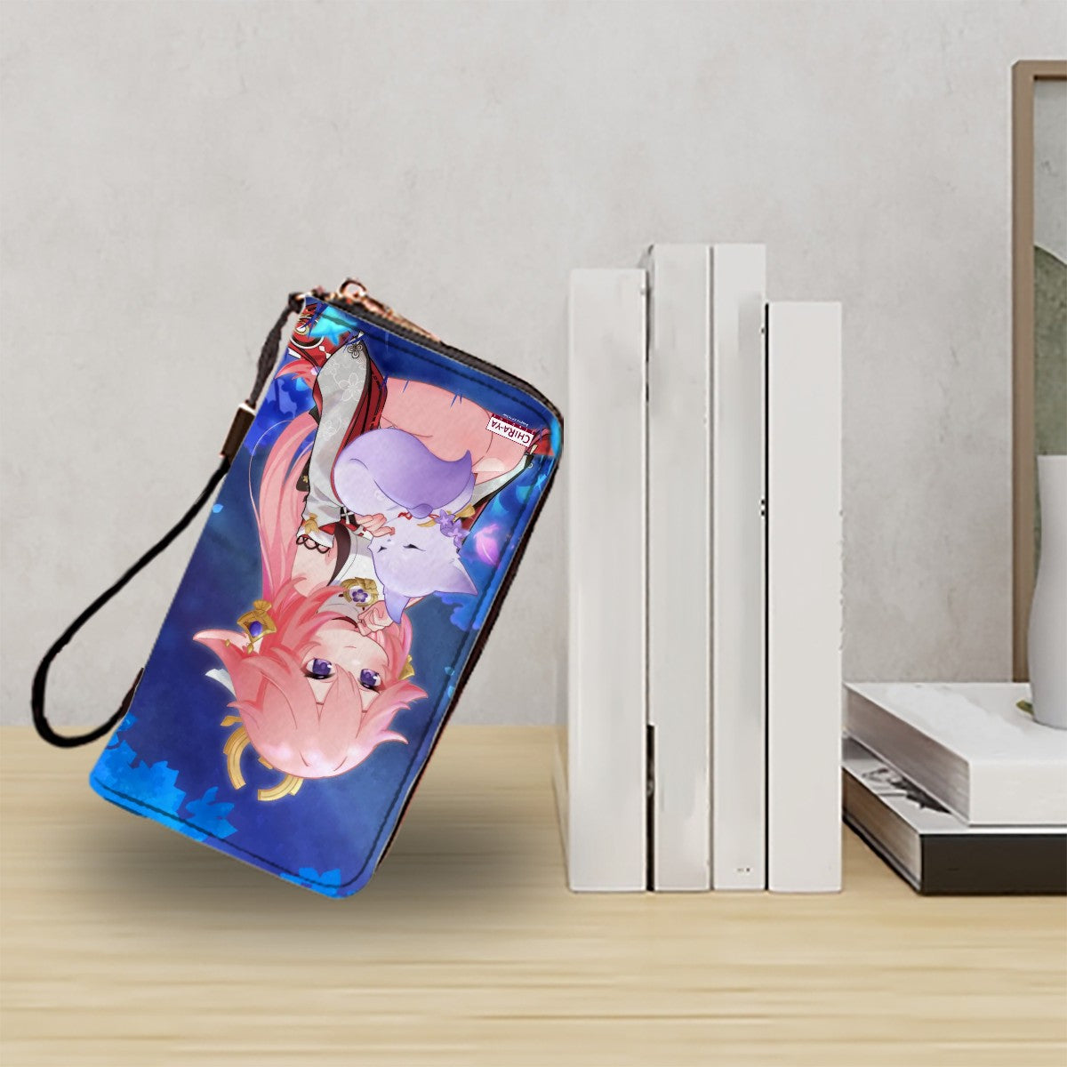 This limited edition, dual-design wallet showcases the original "Ei with Fox Miko" artwork and its role-reversed counterpart, "Miko with Fox Ei", a playful twist to the original that brings a fresh and unique perspective to the relationship of this iconic duo in a parallel world. With each purchase of our wallets, you’ll also receive an exclusive Chiraya Studios thank-you card, featuring a Yae Miko artwork from our "Irodori Statues of Eimiko" series!