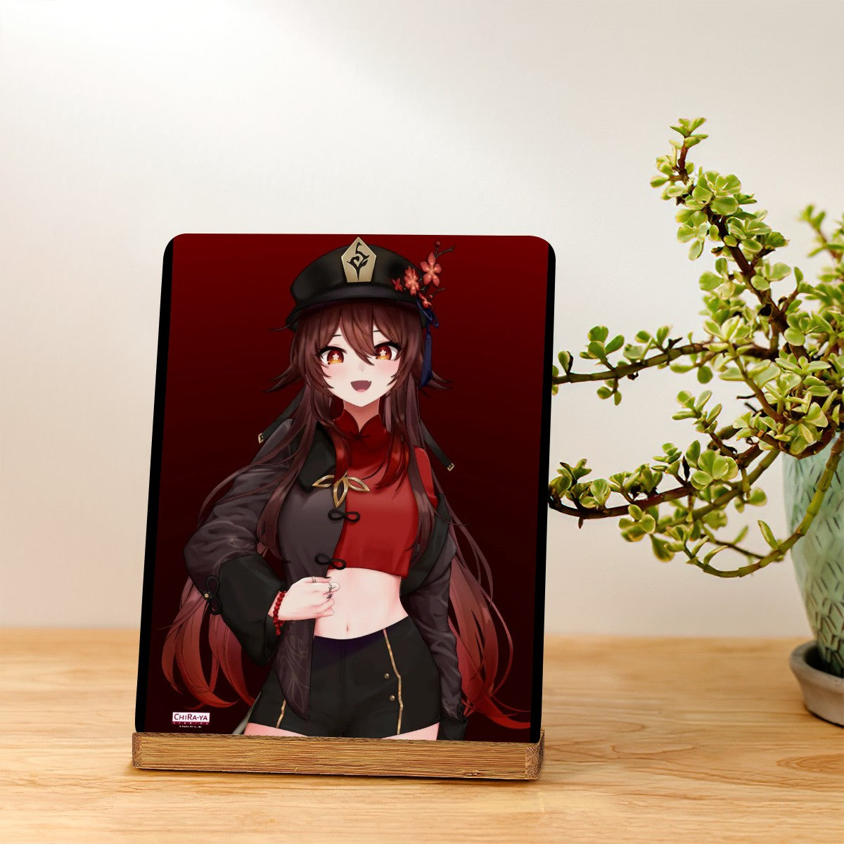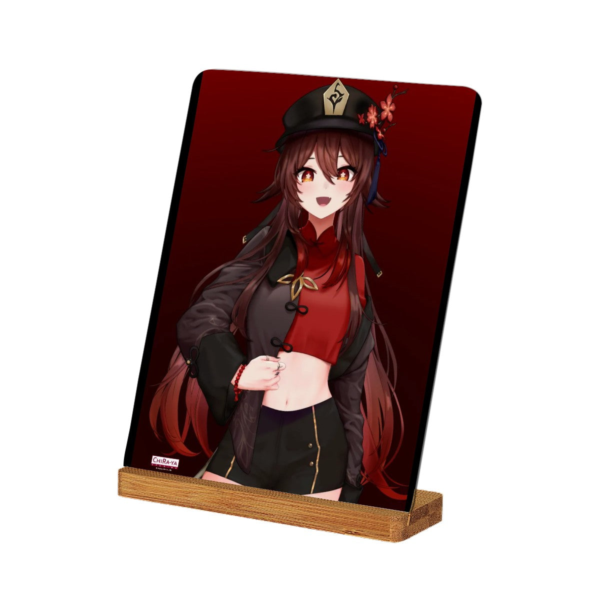 Genshin Impact Metal Print with Stand - Hu Tao: "Crop Top Tao" (Dark Background)