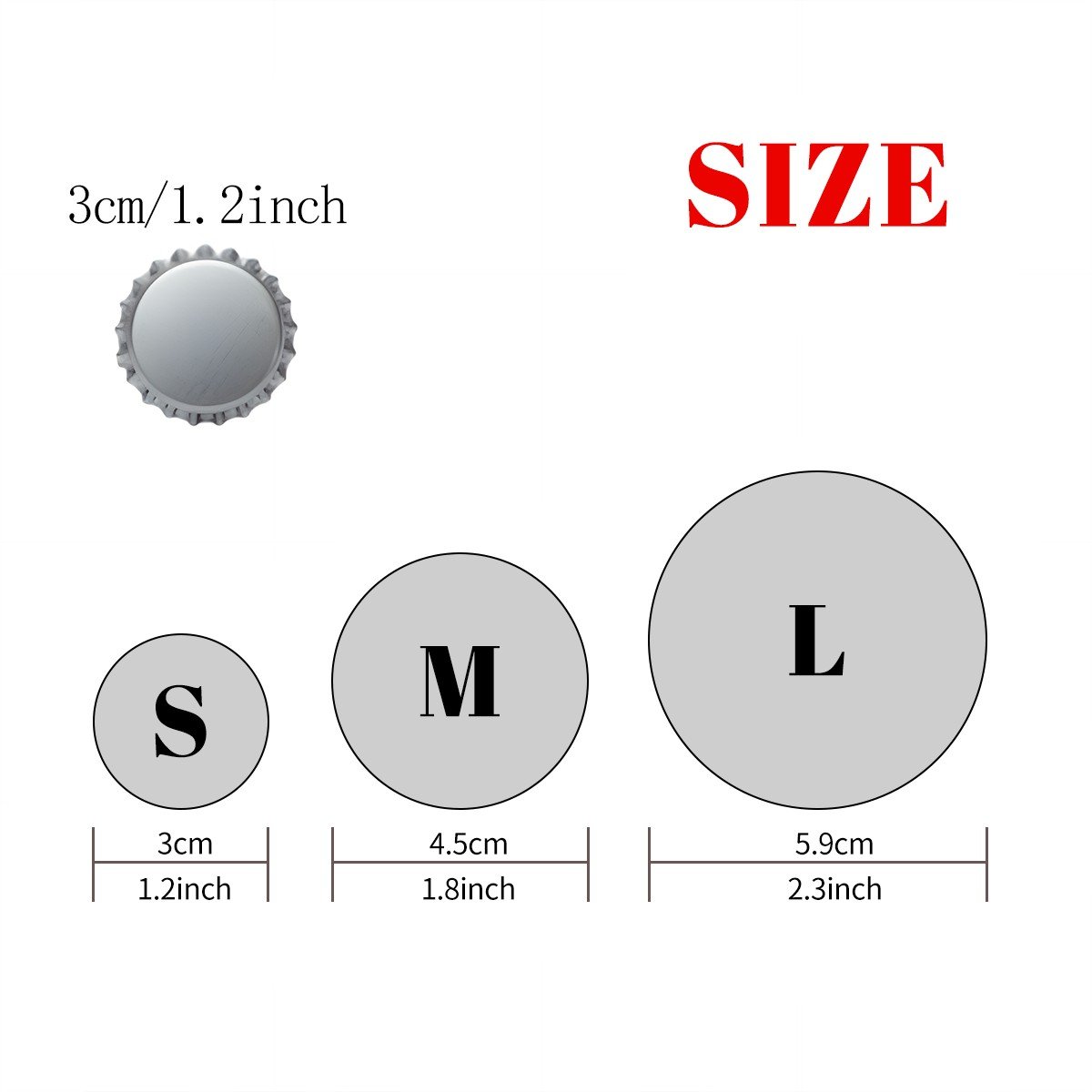Sizes: Available in three different sizes/diameters: 1.2" (3cm), 1.8" (4.5cm), and 2.3" (5.9cm)