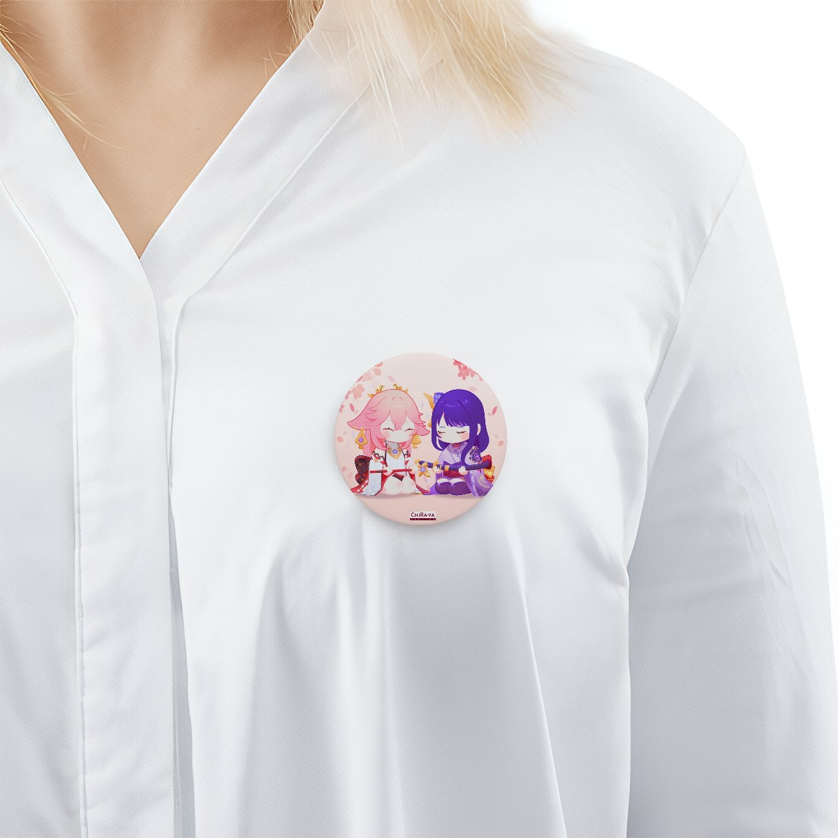 Genshin Impact Pin Badge - Raiden Shogun & Yae Miko: "The Irodori Statues of Eimiko"