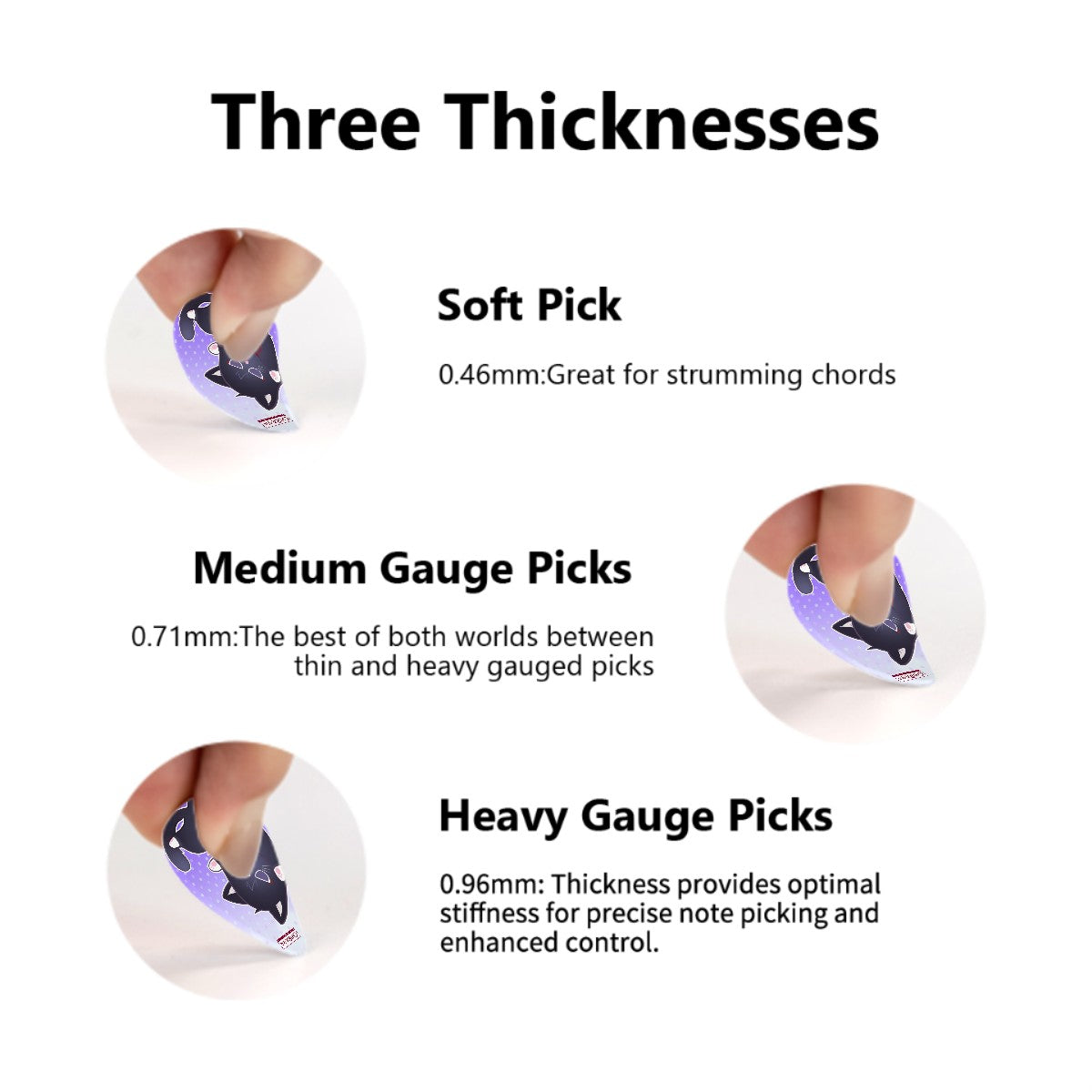Relevant Use: Suitable for various stringed instruments such as guitars, ukulele etc. The distinct thickness of each pick creates a unique sound color, with thin picks producing bright and crisp notes, and thick picks delivering a fuller sound, offering a balanced tone perfect for various playing styles.