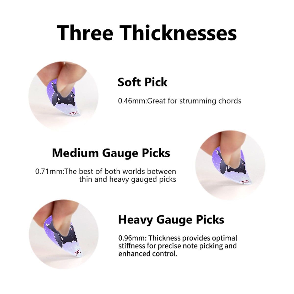 Product Performance: Enhance your guitar/ukulele-playing experience with Chiraya Studios' Scarameow guitar picks! Made with durable and wear-resistant materials, this special edition set includes 12 picks of 3 different gauges (4 of each thickness), providing you with options for achieving your desired sound!