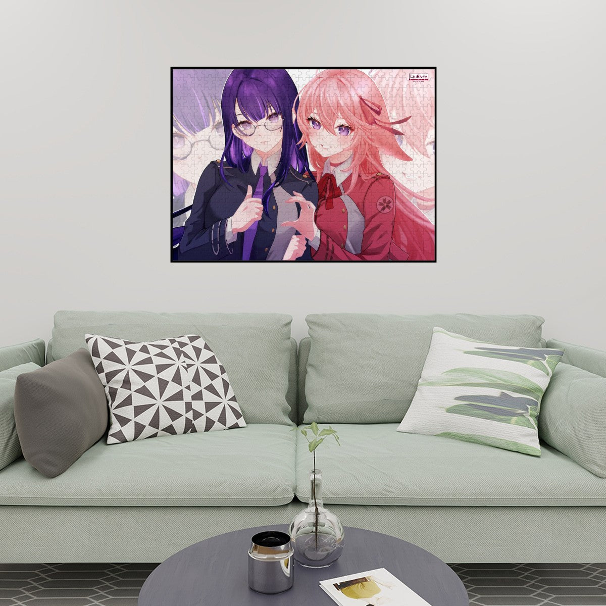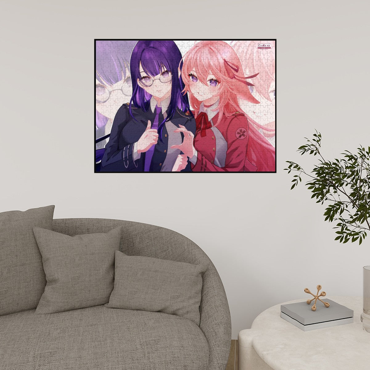 Experience the satisfaction of putting your favorite characters together with an original Chiraya Studios wooden jigsaw puzzle, featuring this one-of-a-kind Genshin Impact x Lycoris Recoil crossover art starring Inazuma's alluring (yet deadly) dynamic duo, Raiden Ei and Yae Miko, as LycoReco's Takina and Chisato!