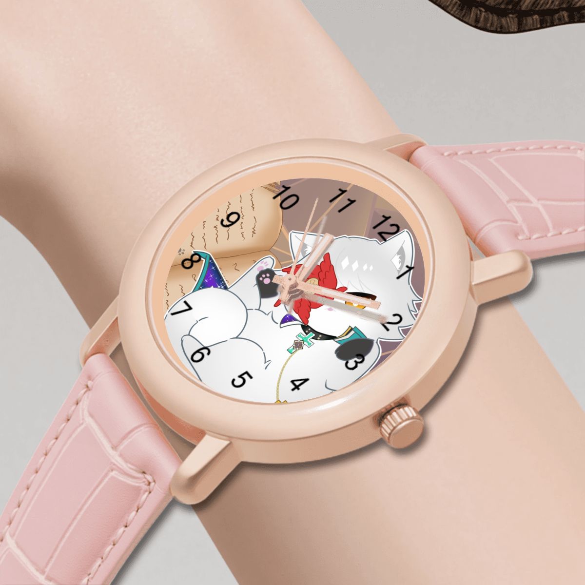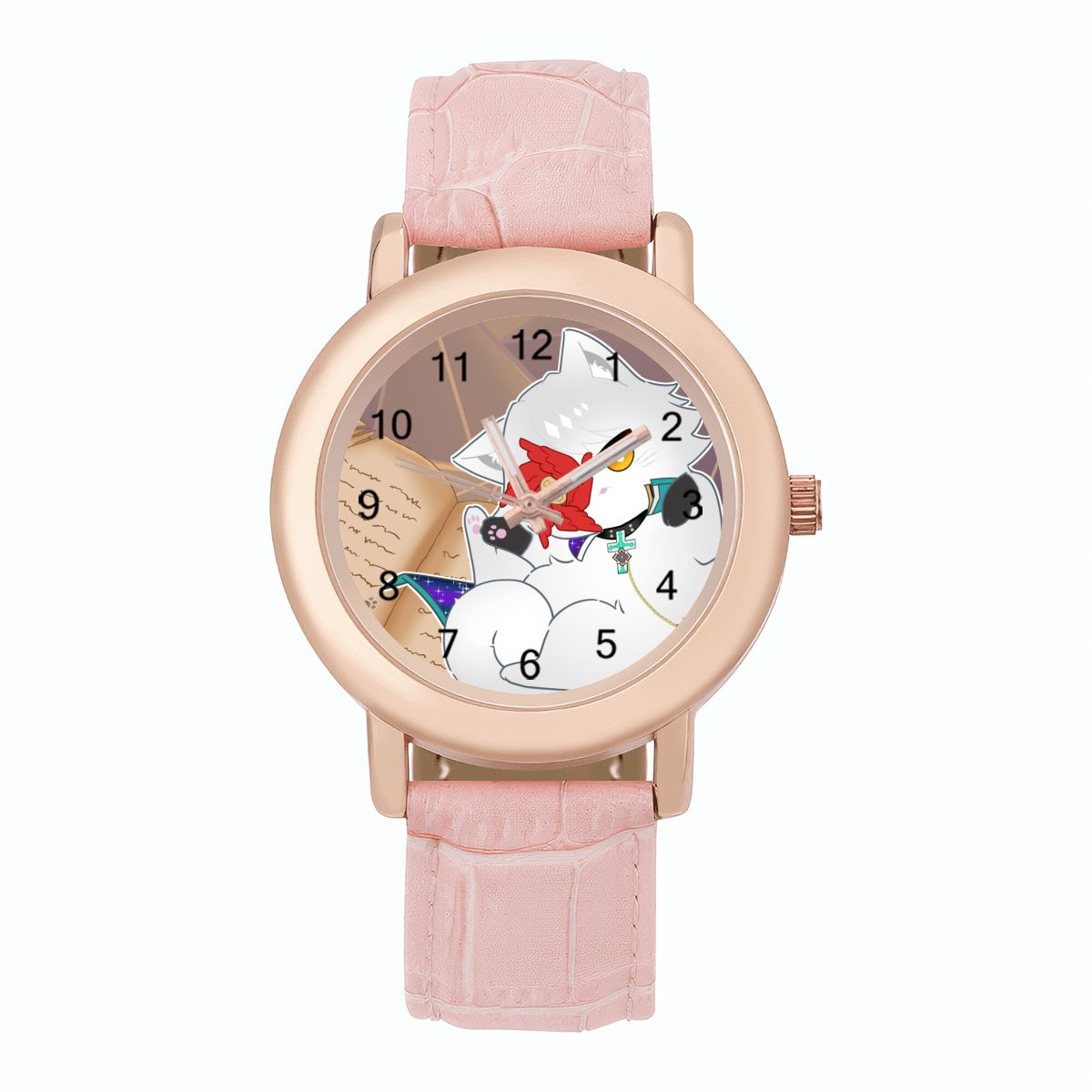 Show off your love for your favorite feline wherever you go with our special edition pink leather watch, featuring Asuka R. Kreutz from the Guilty Gear game series.. in our original interpretation of his cat form! Special shoutout to Mochii Kacie for commissioning this adorable artwork 🫶